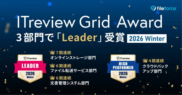 「ITreview Grid Award 2026 Winter」オンラインストレージほか2部門で顧客満足度と認知度の双方に優れた称号「Leader」を受賞 7期連続