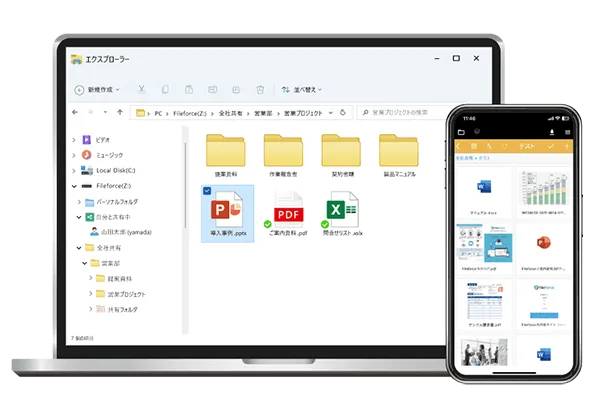 木場氏: Fileforceは、ユーザー数無制限の料金体系と、普段使い慣れたエクスプローラーで直感的に操作できる点が大きな魅力です。社員の平均年齢が高い当社でもユーザートレーニング不要でスムーズに利用が広がりました。また、遠隔地の役員も同じファイルにアクセスできるようになり、全国規模での情報共有が可能になったことは非常に大きな効果でした。モバイルアプリも使いやすく、外出先でも安心して利用できます。