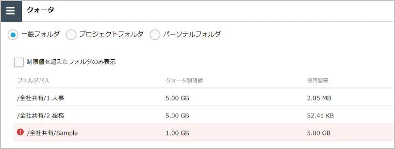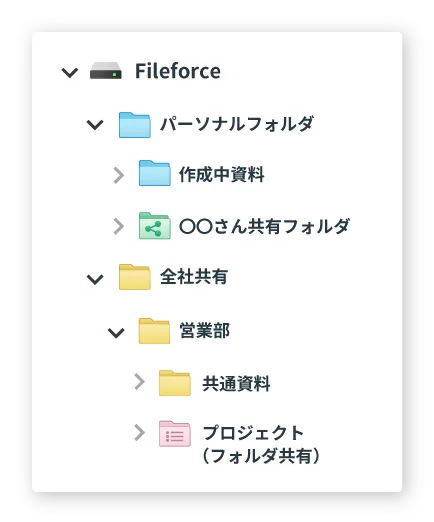 ※青色のパーソナルフォルダは管理者も閲覧不可な個人フォルダとなる