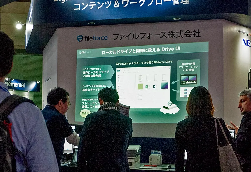 ファイルフォースは2018年11月14日~16日に幕張メッセで開催されたInter BEE 国際放送機器展(以下Inter BEE)に出展・登壇をいたしました。 昨年に引き続き、AWS(Amazon Web Services)のセクション内のファイルフォースブースにも3日間の会期中たくさんの方にお越しいただき、弊社の提案する日常業務からアーカイブまでの様々な業務シーンにおけるクラウドファイルサービスの活用とその可能性についてご紹介をすることができました。