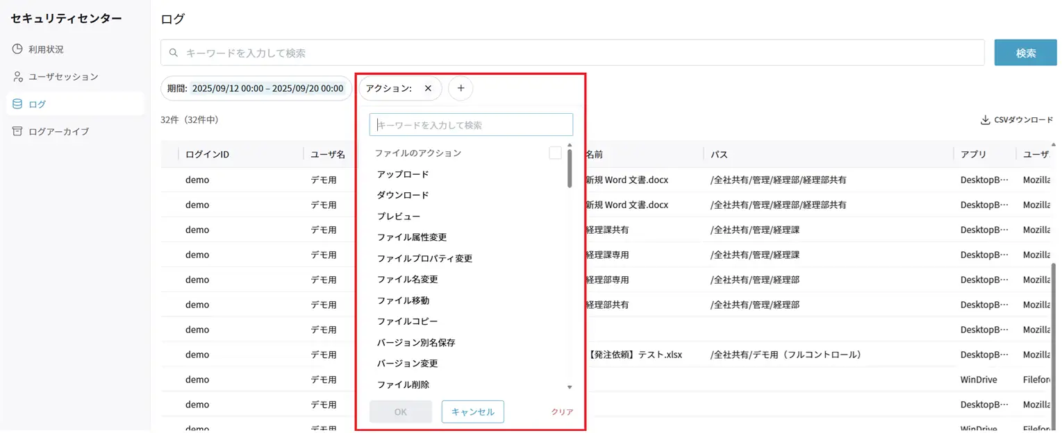 パスワード付き共有リンクで大容量ファイル送付も容易に。多要素認証でアクセス制御を強化し、外部転送サービス依存を解消 - 可視化によるリスク低減